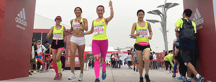 齐聚科技受邀参加北京大型马拉松比赛,并组织美女主播跑团参赛。 她们一身靓丽的运动装,秀出大长腿A4腰,成为北马现场一道靓丽的风景线,所到之处不断有参赛者前来求合影甚至求陪跑。主播们努力拼搏,通过全程直播的形式,展现北马的火爆场面,体现运动健将的奋斗精神,开创直播+长跑的全新模式。 最终,齐聚科技美女跑团与30000名运动健将一起跑完全程,战果辉煌。
